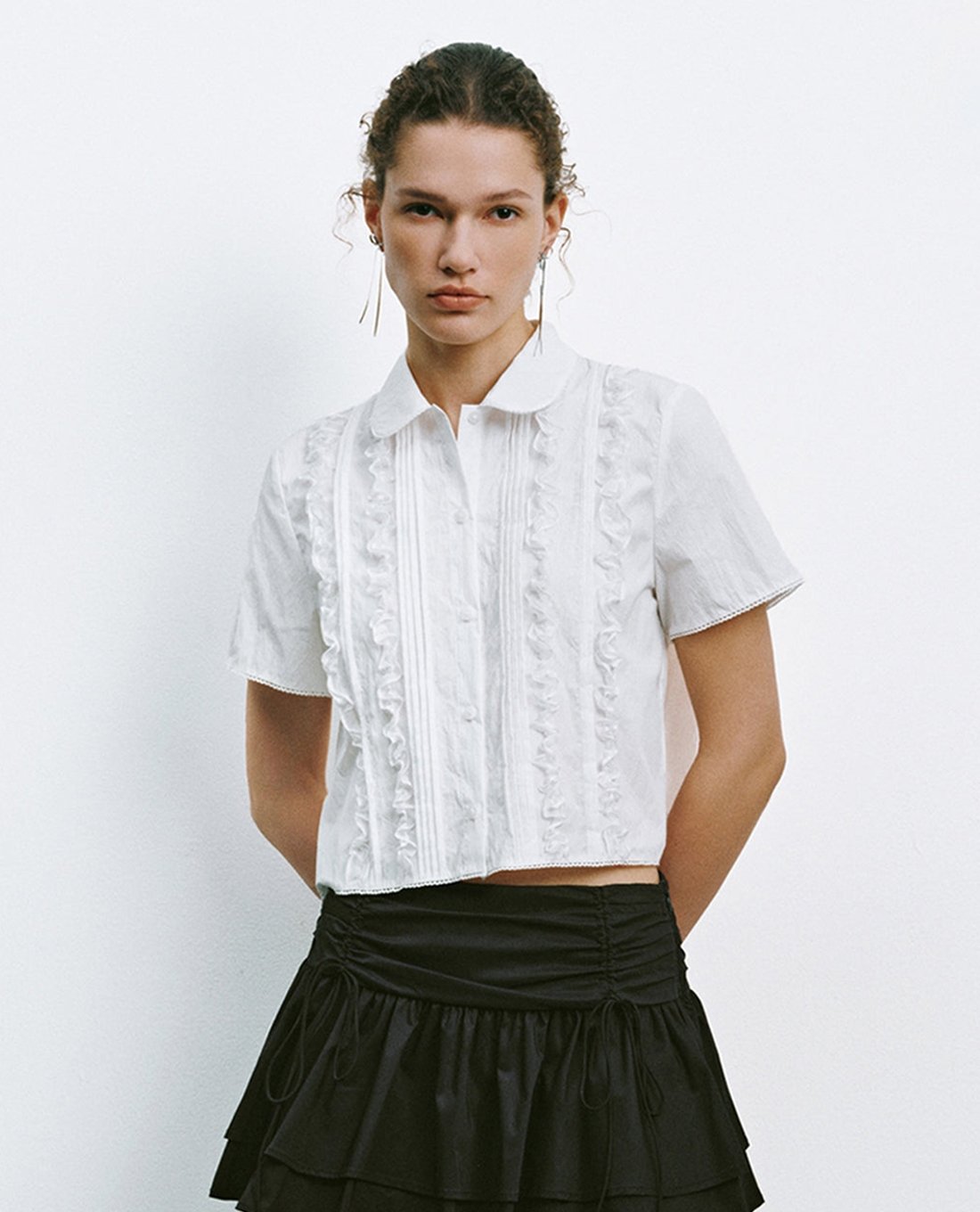 Áo sơ mi nữ cổ sen phối bèo nhún