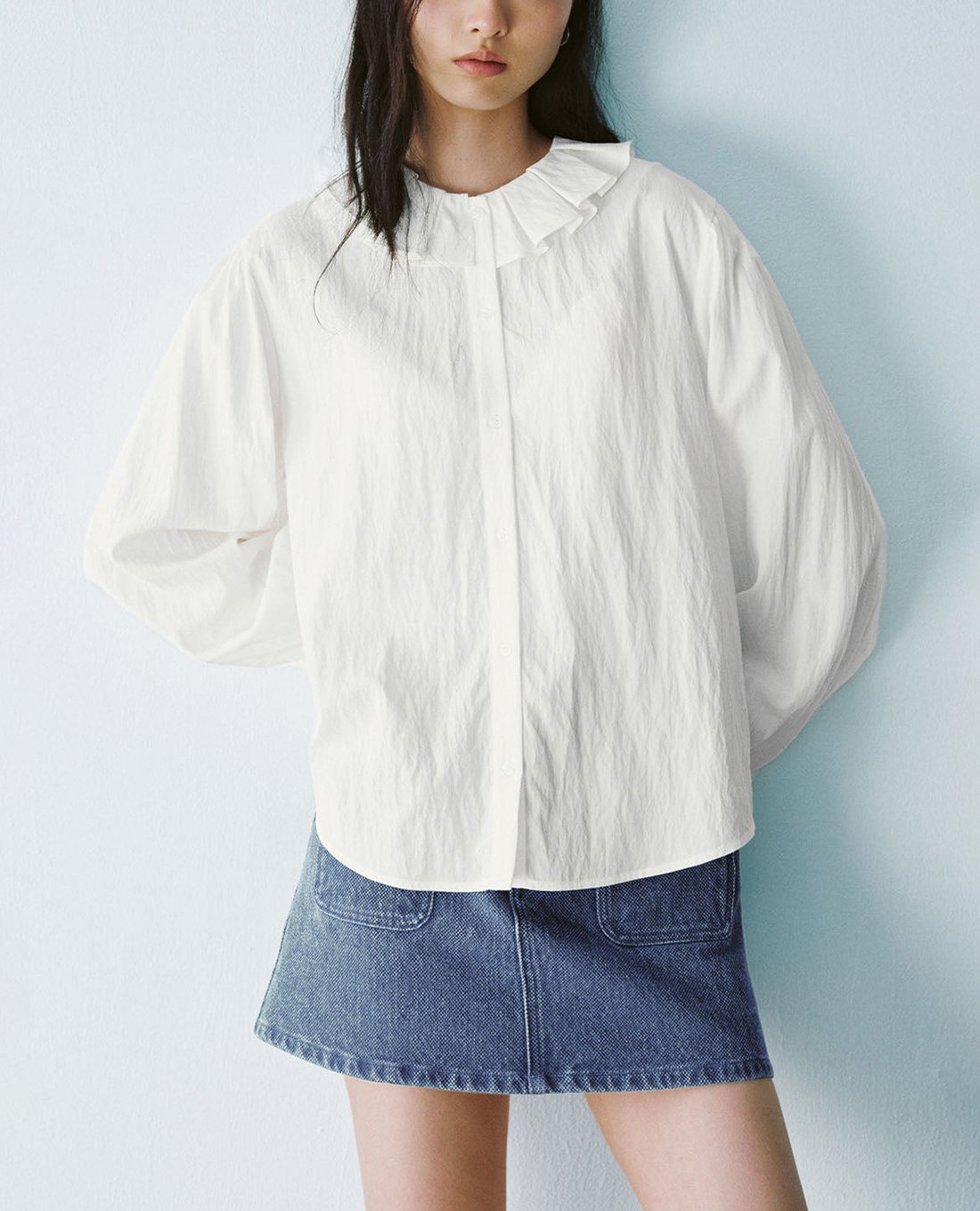 Áo sơ mi nữ cổ tròn tay dài Loose