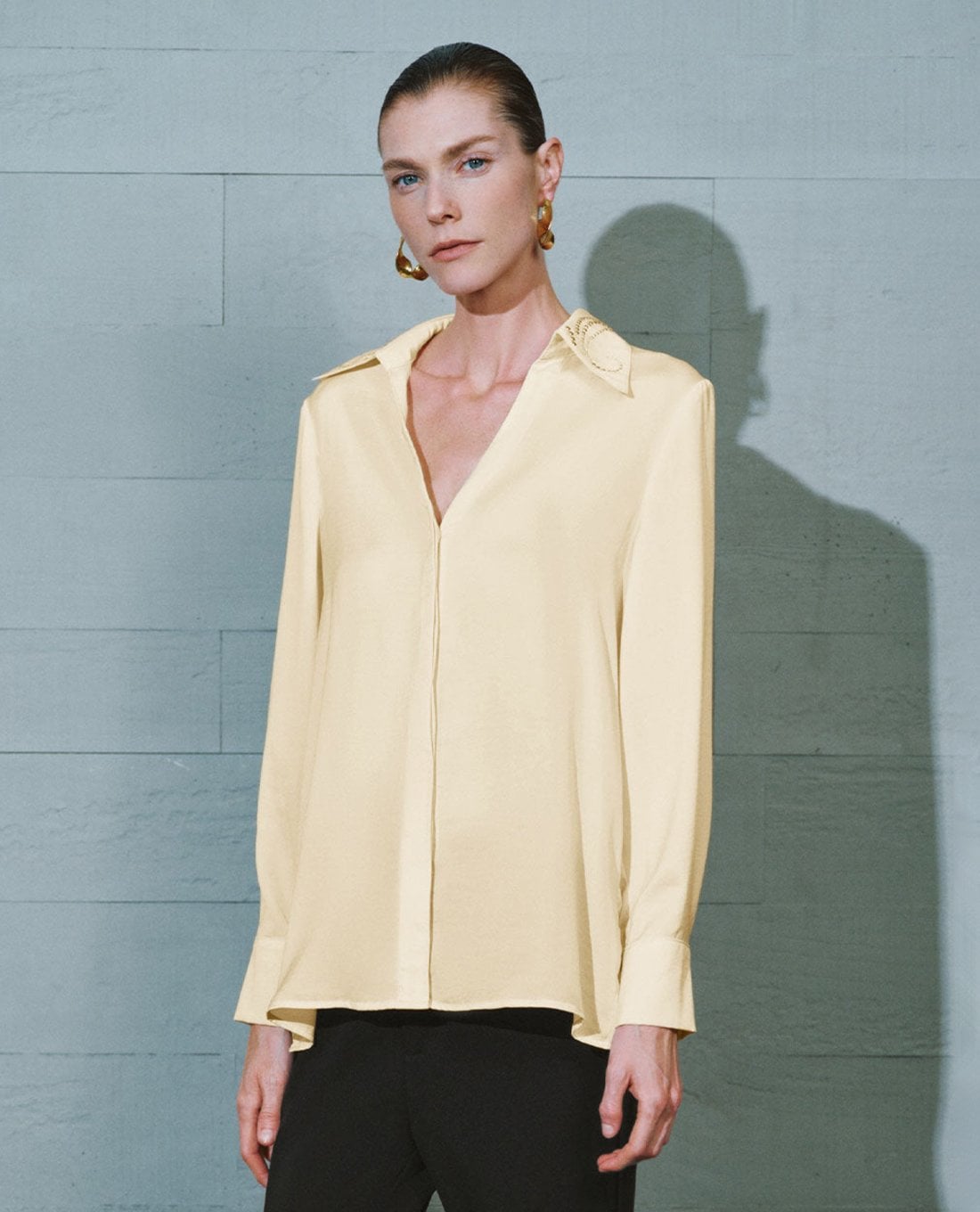 Áo sơ mi nữ cổ V tay dài thanh lịch