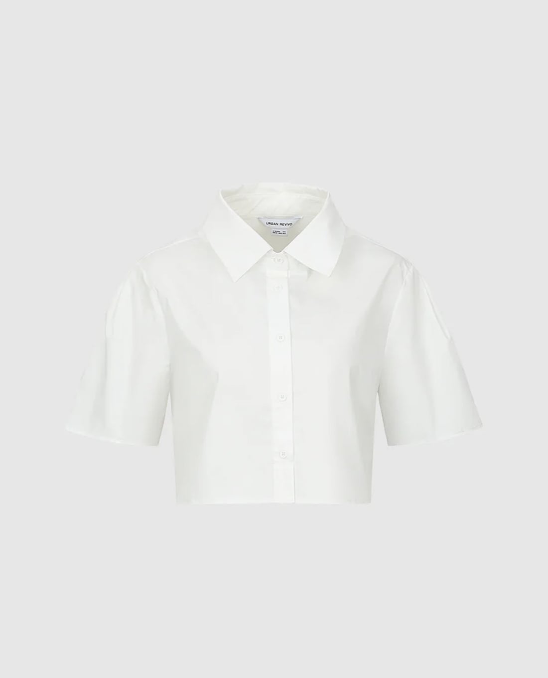 Áo sơ mi nữ croptop cổ bẻ tay ngắn Button Up