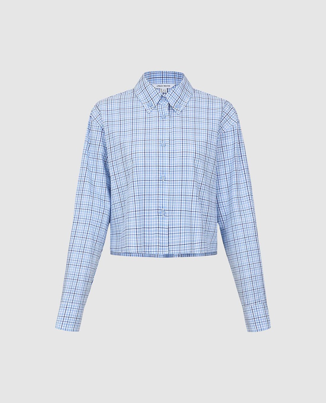 Áo sơ mi nữ croptop tay dài kẻ caro