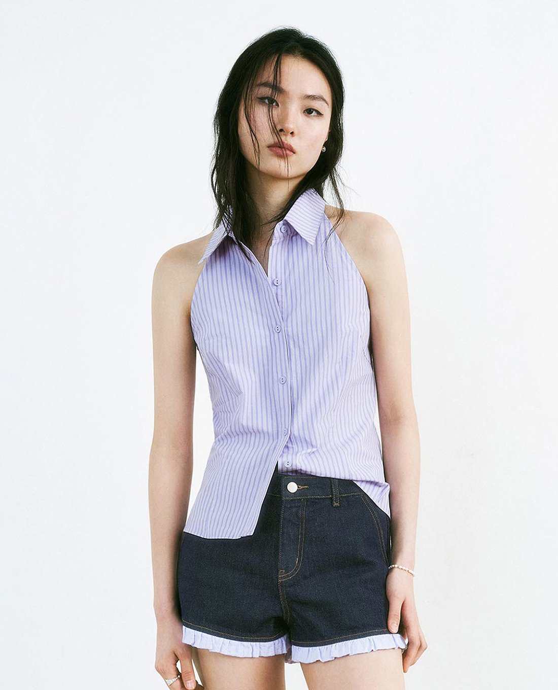 - Cổ sơ mi cổ điển kết hợp dáng croptop tạo điểm nhấn mới lạ