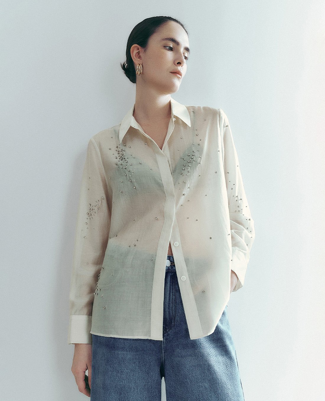Áo sơ mi nữ tay dài đính đá