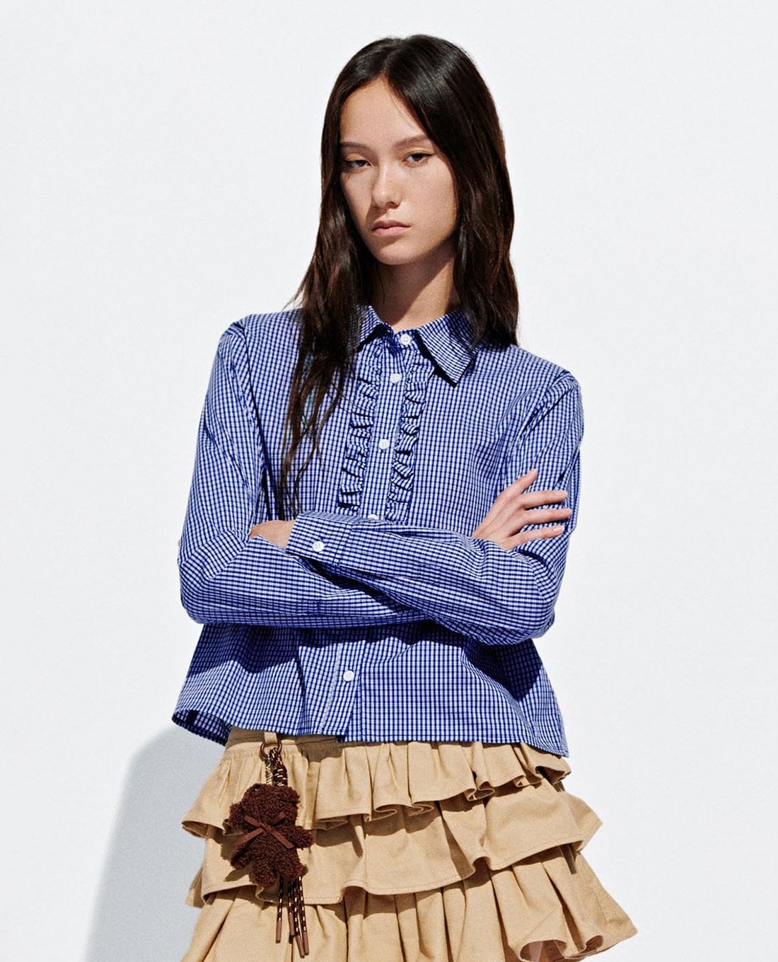 - Chi tiết bèo nhún ở hàng khuy giữa tạo điểm nhấn