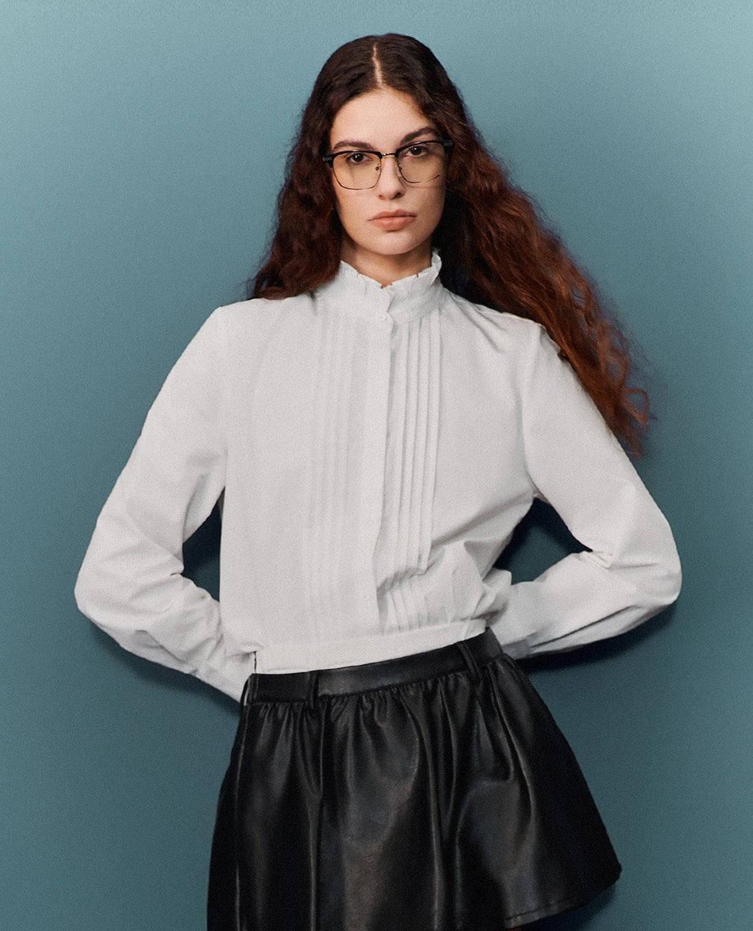 - Phom áo sơ mi croptop năng động, trẻ trung