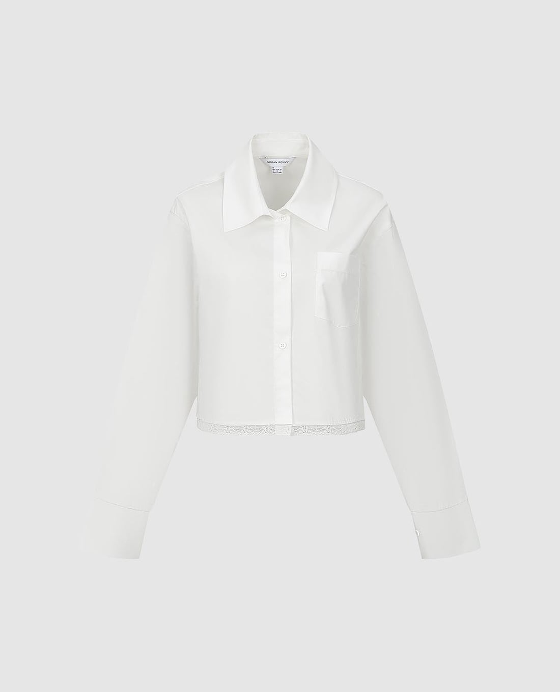 Áo sơ mi nữ tay dài phom croptop phối ren