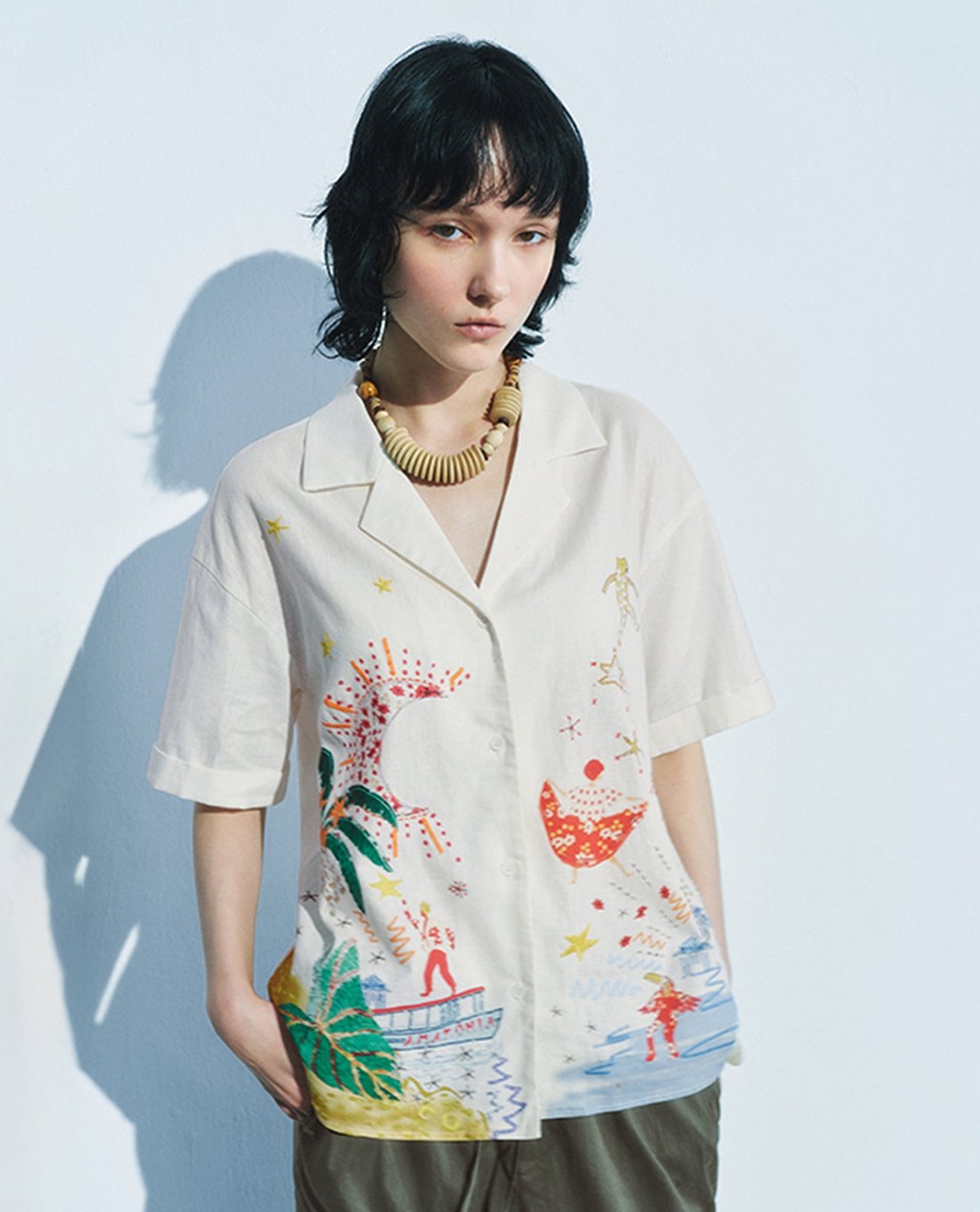 Áo sơ mi nữ tay ngắn in hình nghệ thuật