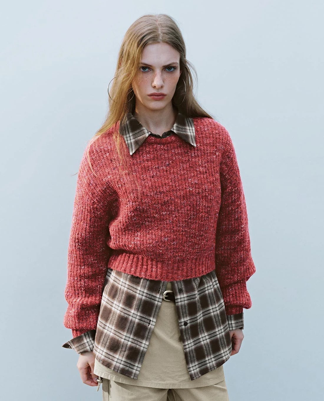 Áo sweater nữ cổ tròn tay dài phom croptop