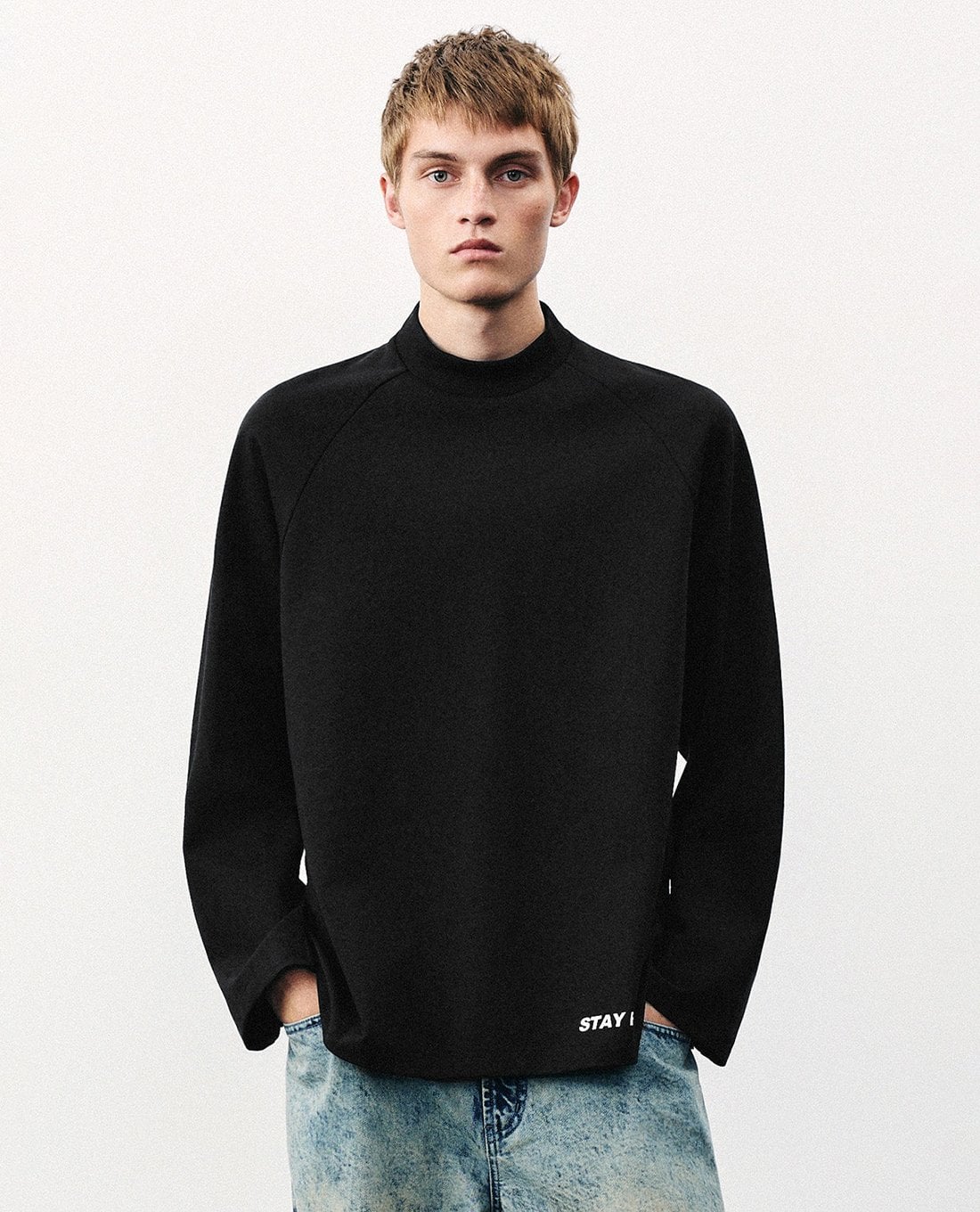 Áo thun nam cổ cao tay dài Loose