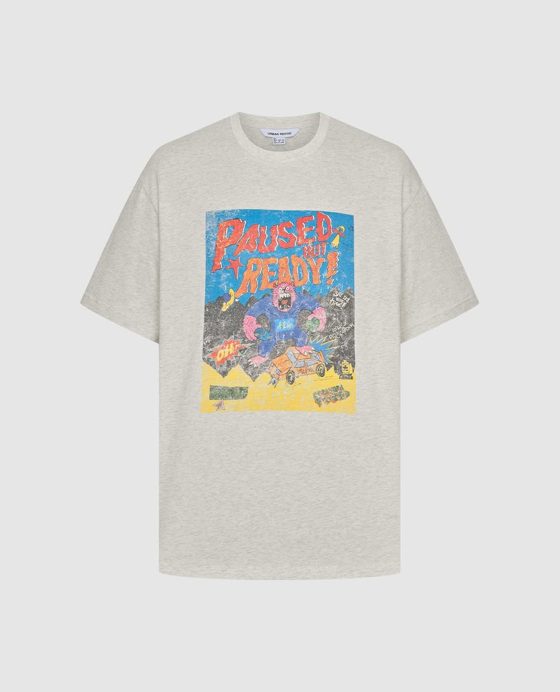 - Hình ảnh hoạt hình và dòng chữ "PAUSED AND READY!" nổi bật giữa áo