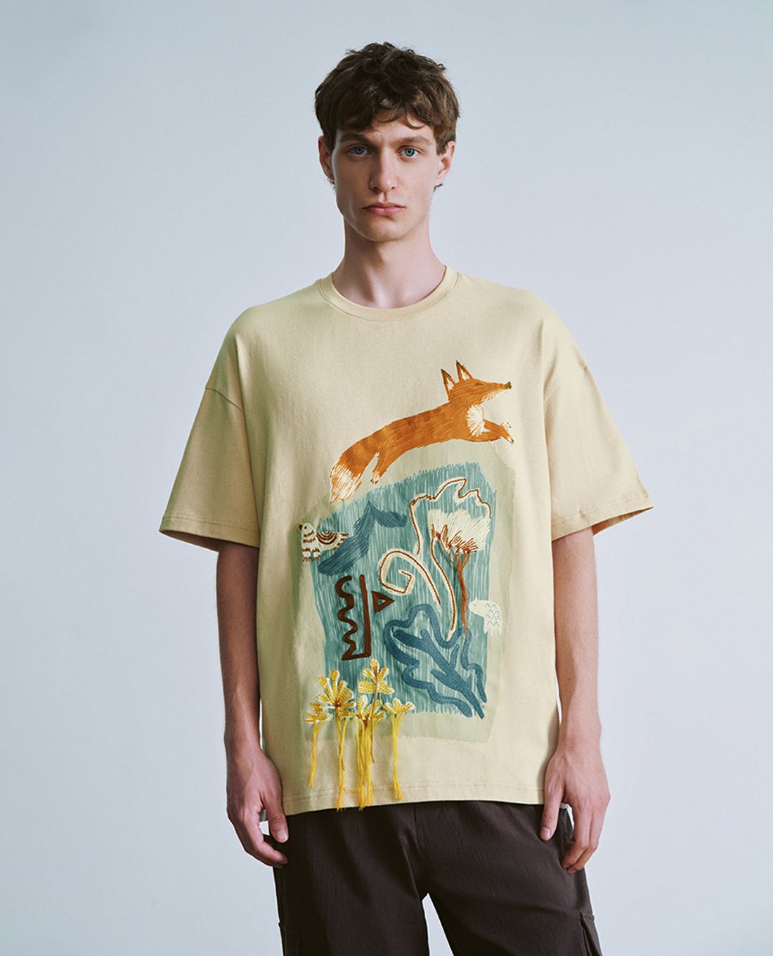 Áo thun nam cổ tròn tay ngắn phối hình in