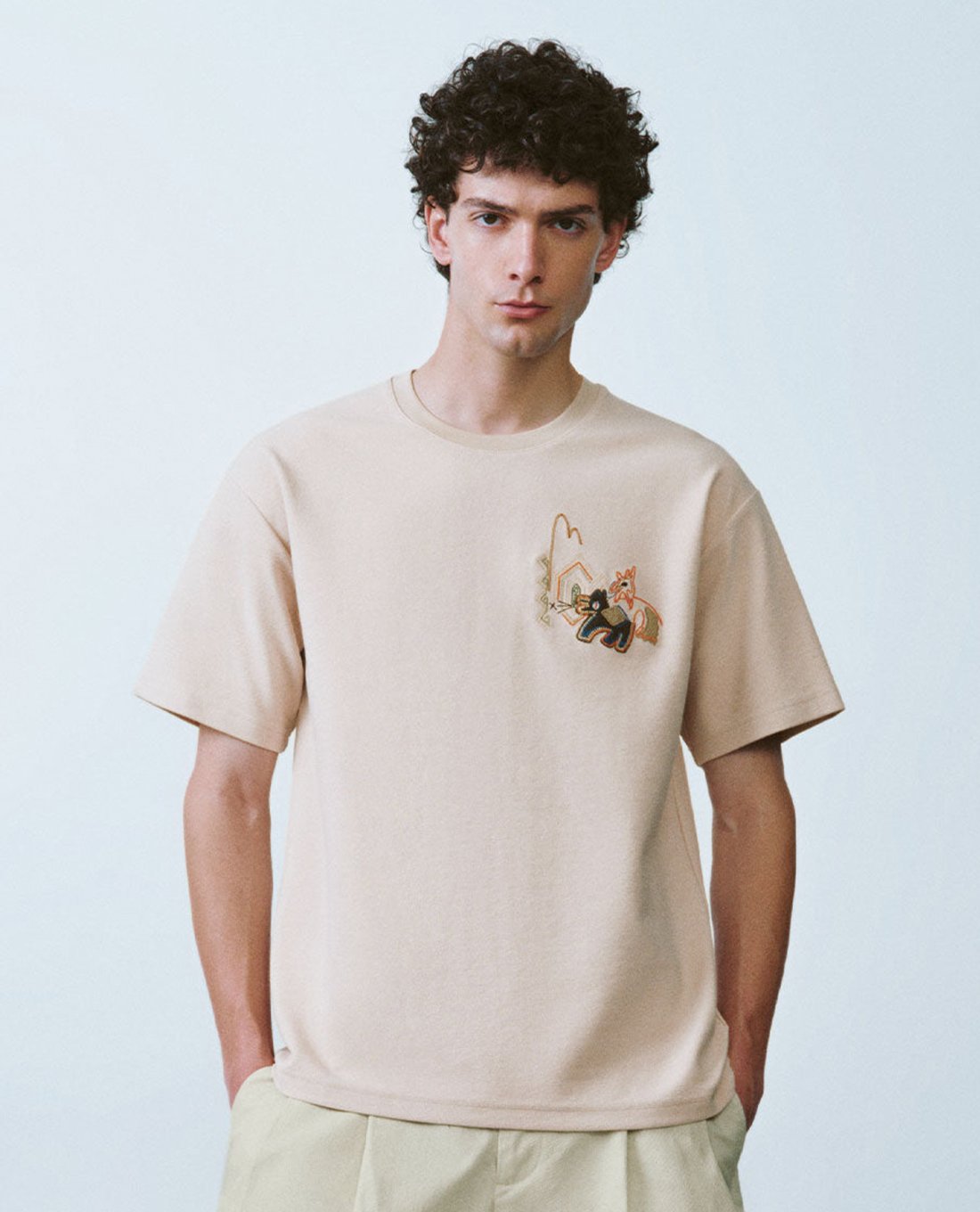 Áo thun nam cổ tròn tay ngắn phối hình thêu