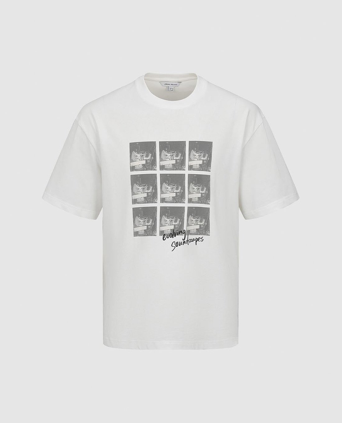 - Họa tiết graphic với hình ảnh đen trắng và chữ viết tay độc đáo