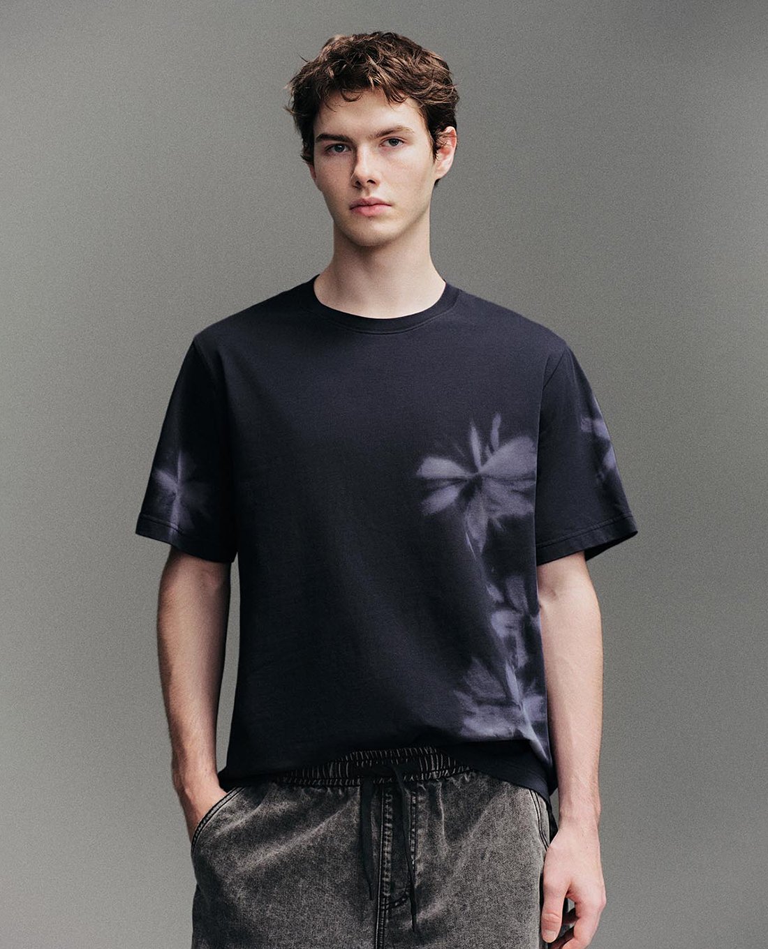 Áo thun nam cổ tròn tay ngắn phối họa tiết