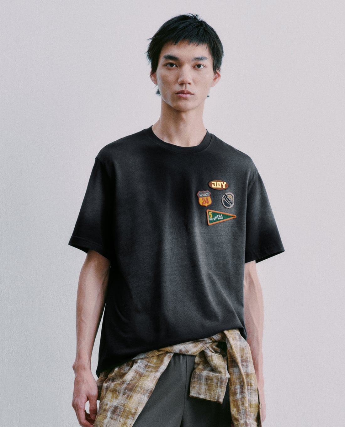 - Thiết kế áo thun basic kết hợp chi tiết patch thêu độc đáo