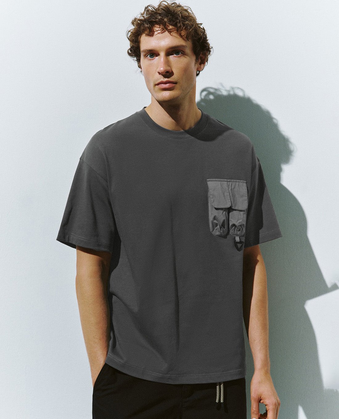 Áo thun nam cổ tròn tay ngắn phối túi hộp
