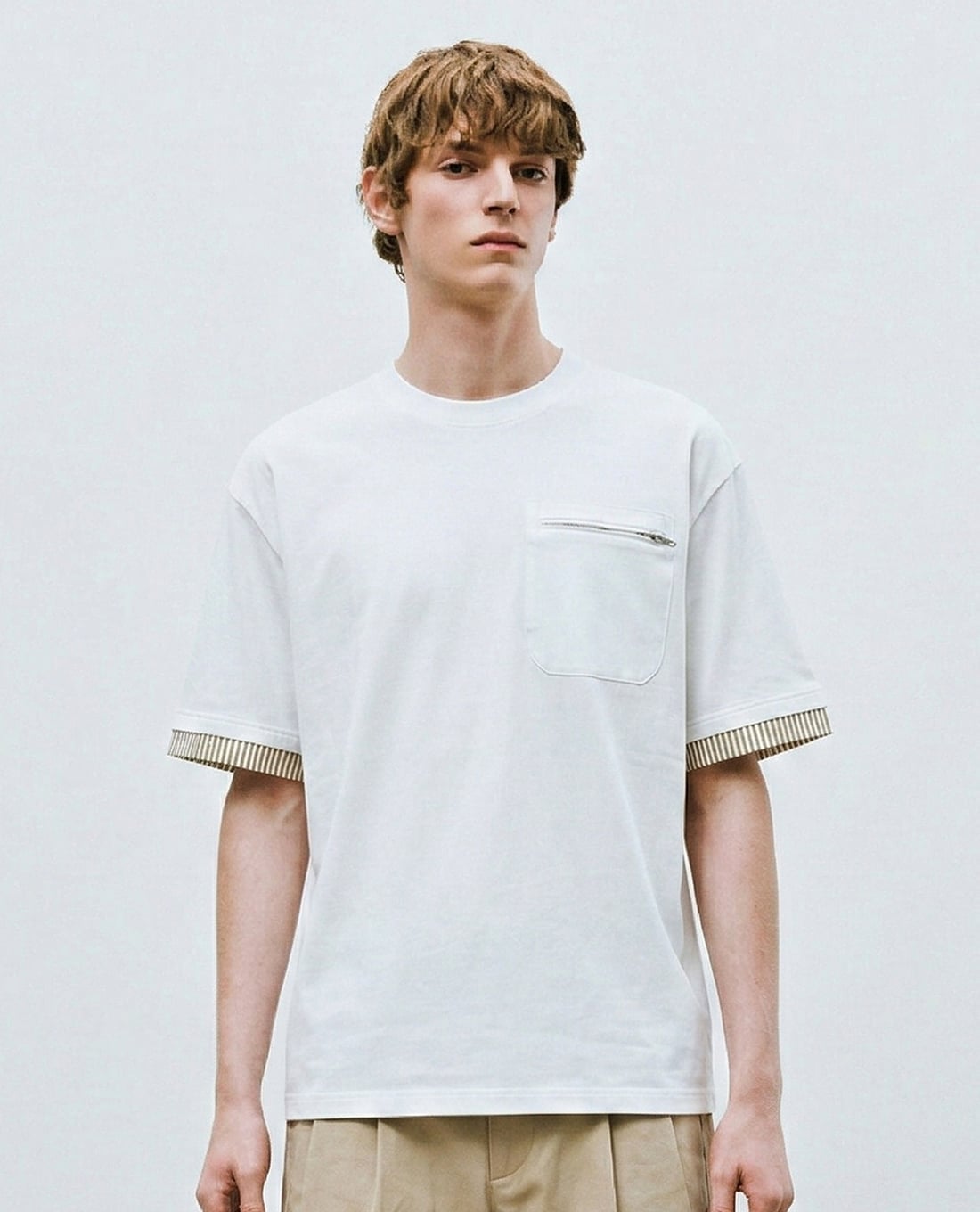 - Thiết kế áo thun basic kết hợp túi ngực tạo điểm nhấn