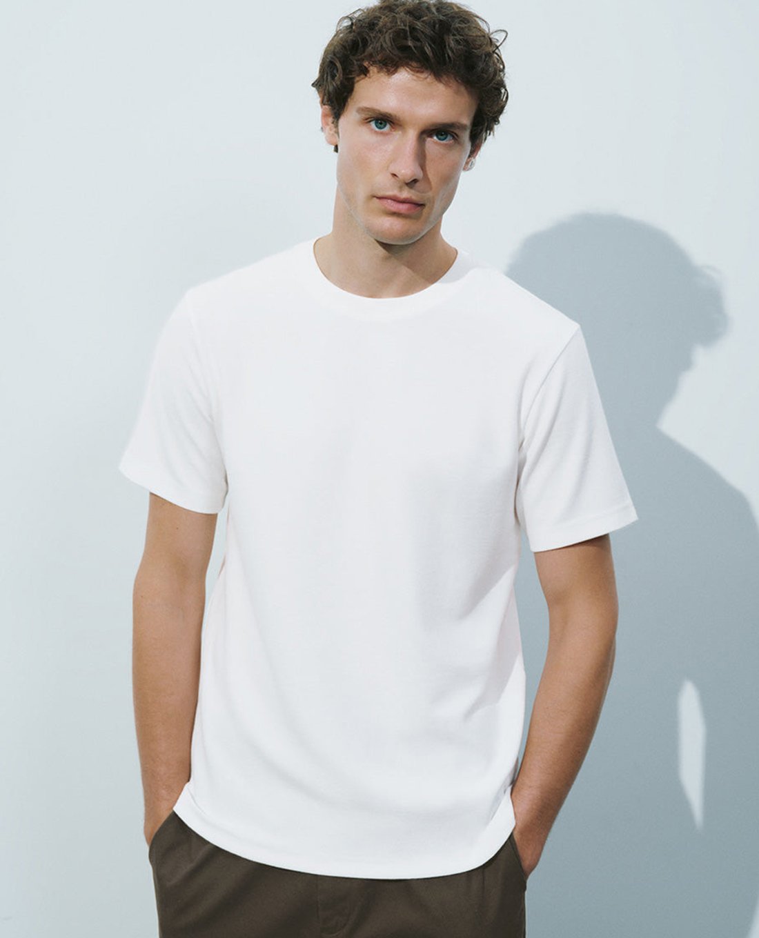 - Thiết kế phom áo thun cổ tròn tay ngắn năng động