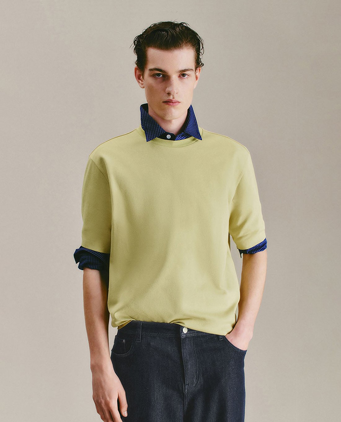 - Thiết kế phom áo thun cổ tròn tay ngắn năng động