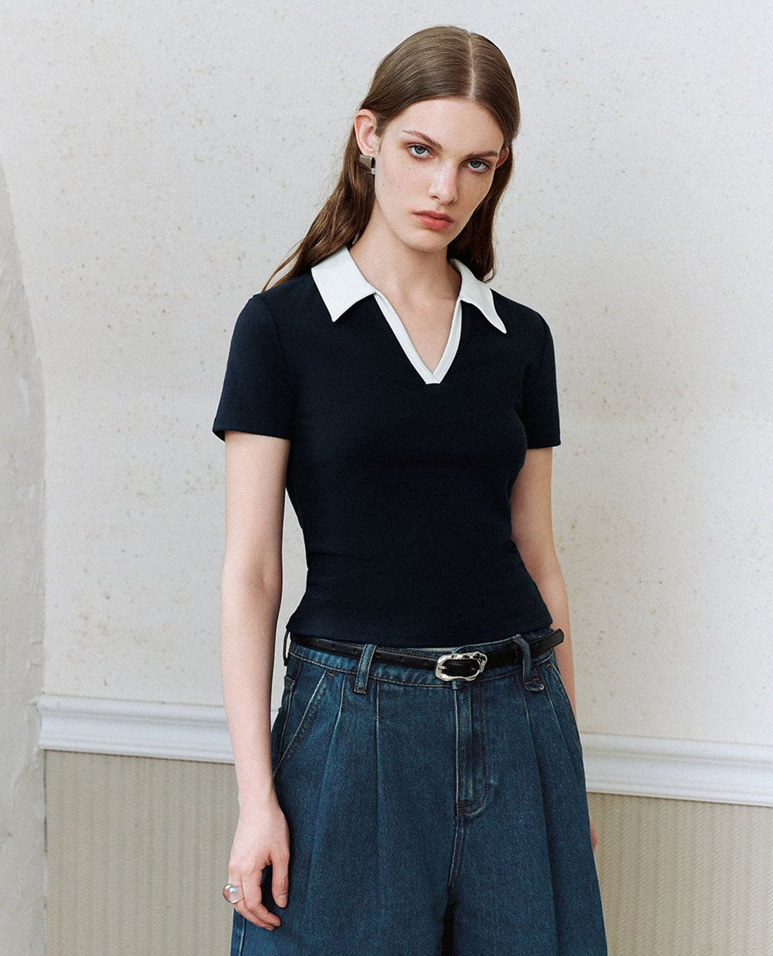 Áo thun nữ cổ bẻ tay ngắn thanh lịch