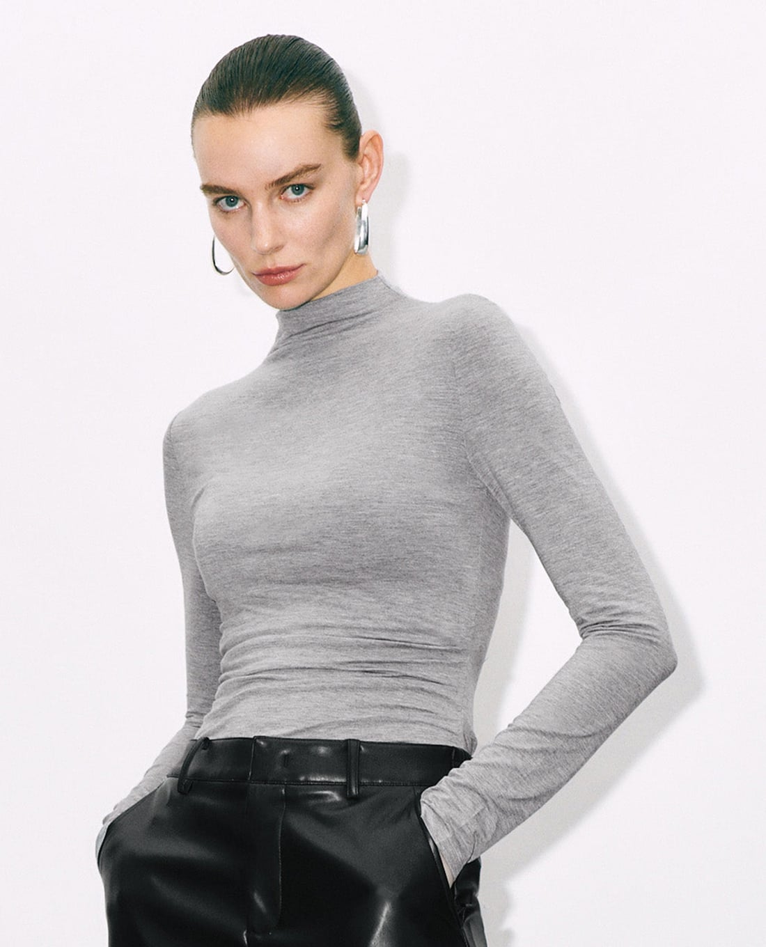 Áo thun nữ cổ cao tay dài phom ôm quyến rũ
