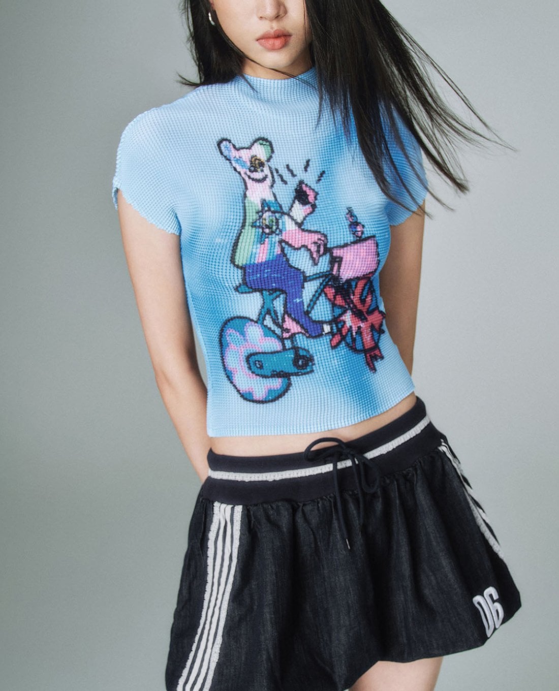 Áo thun nữ cổ cao tay ngắn in họa tiết
