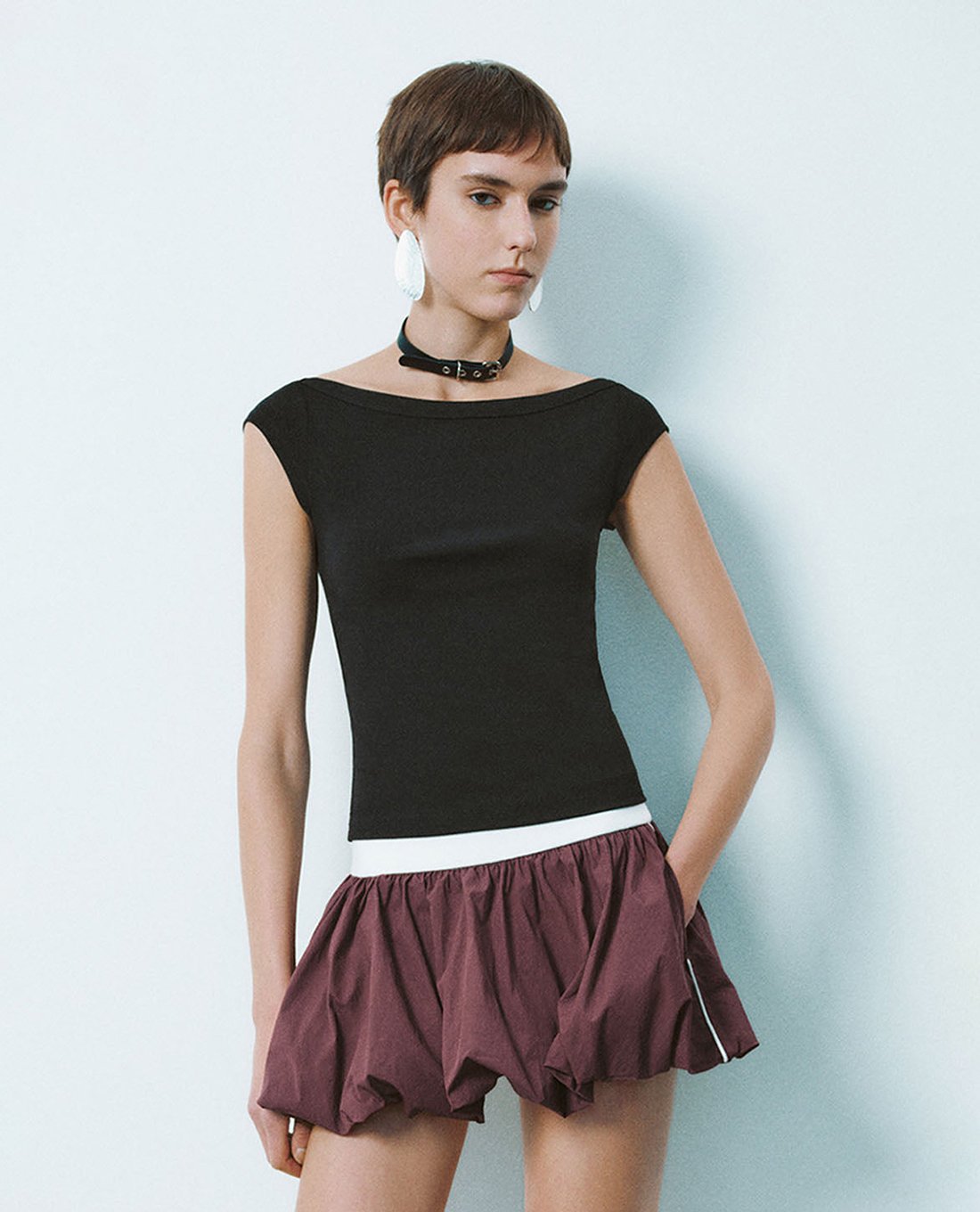 Áo thun nữ cổ thuyền tay ngắn phom ôm