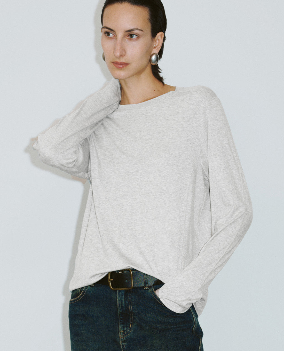 Áo thun nữ cổ tròn tay dài hiện đại Straight