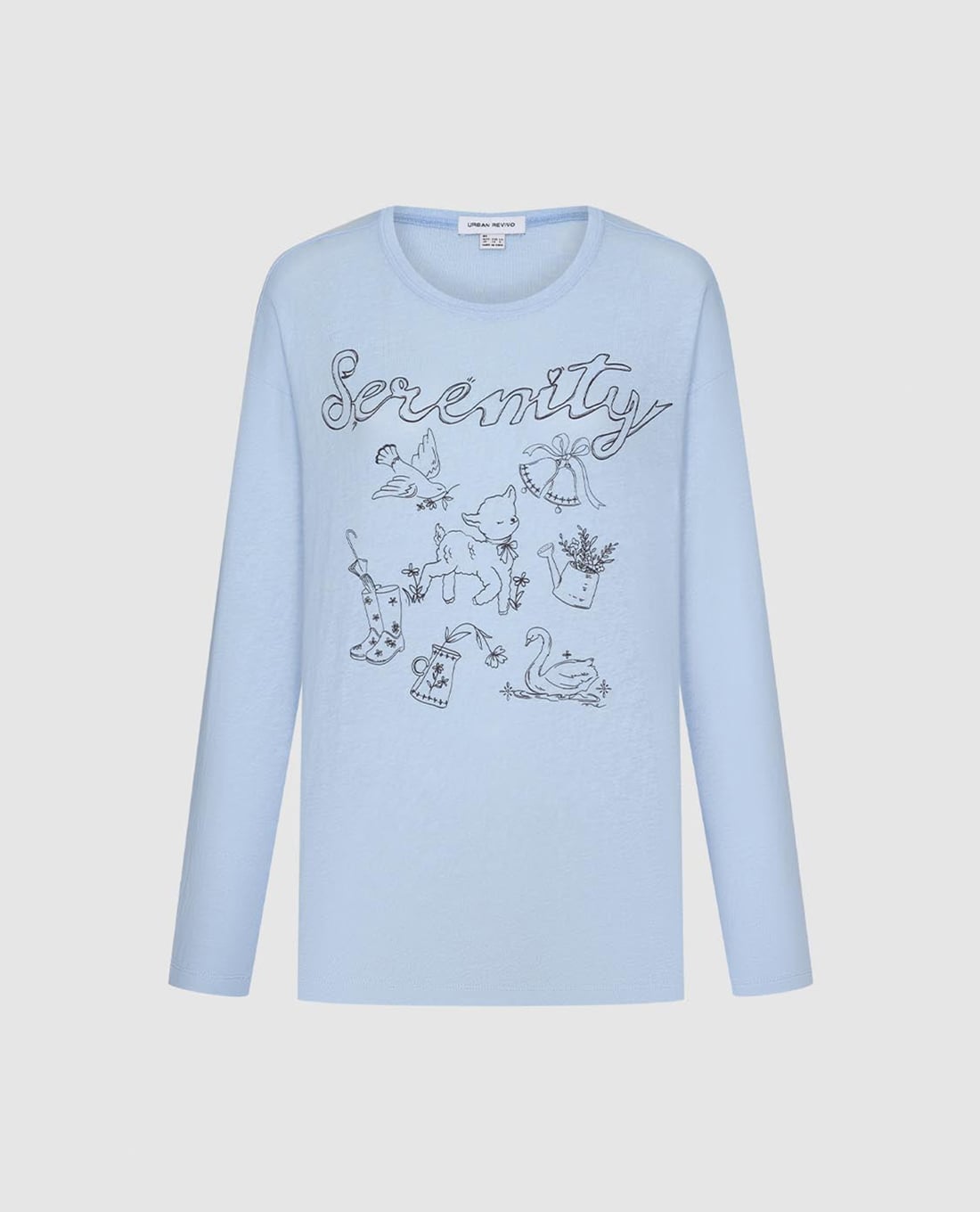 Áo thun nữ cổ tròn tay dài in họa tiết