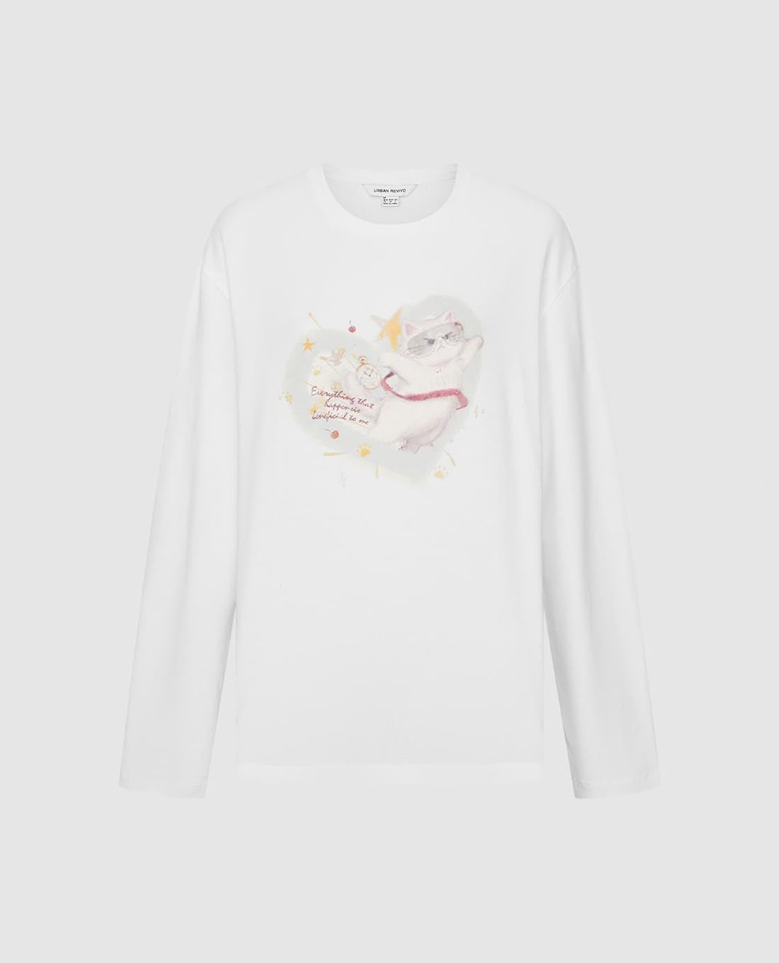 Áo thun nữ cổ tròn tay dài in họa tiết
