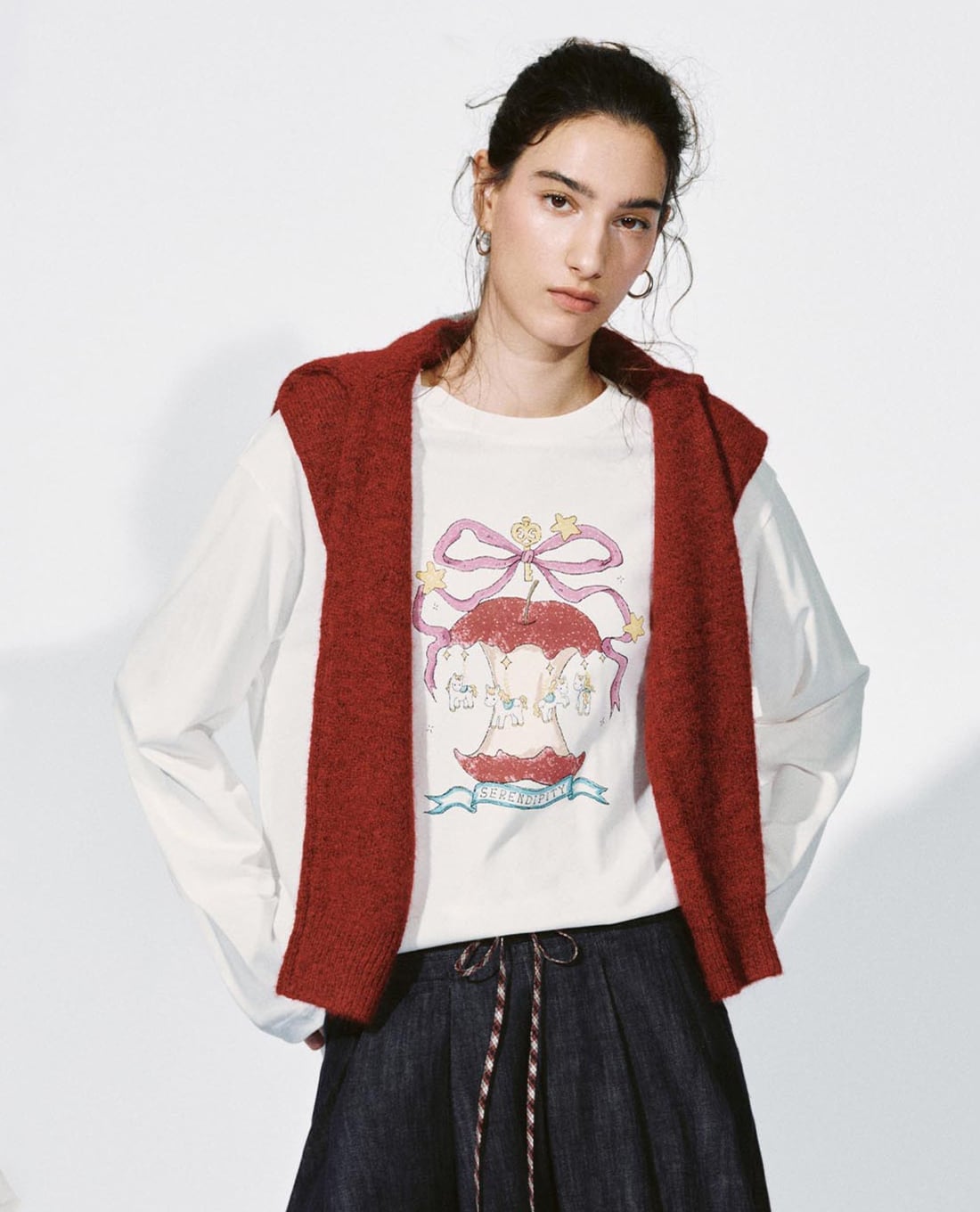 Áo thun nữ cổ tròn tay dài in họa tiết
