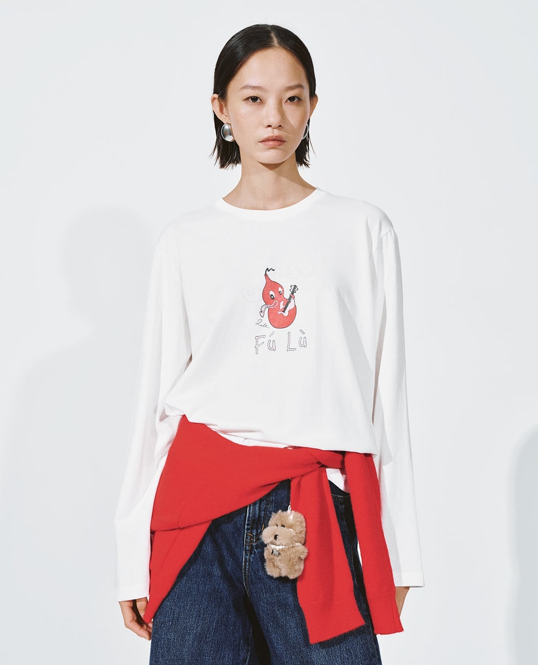 Áo thun nữ cổ tròn tay dài in họa tiết
