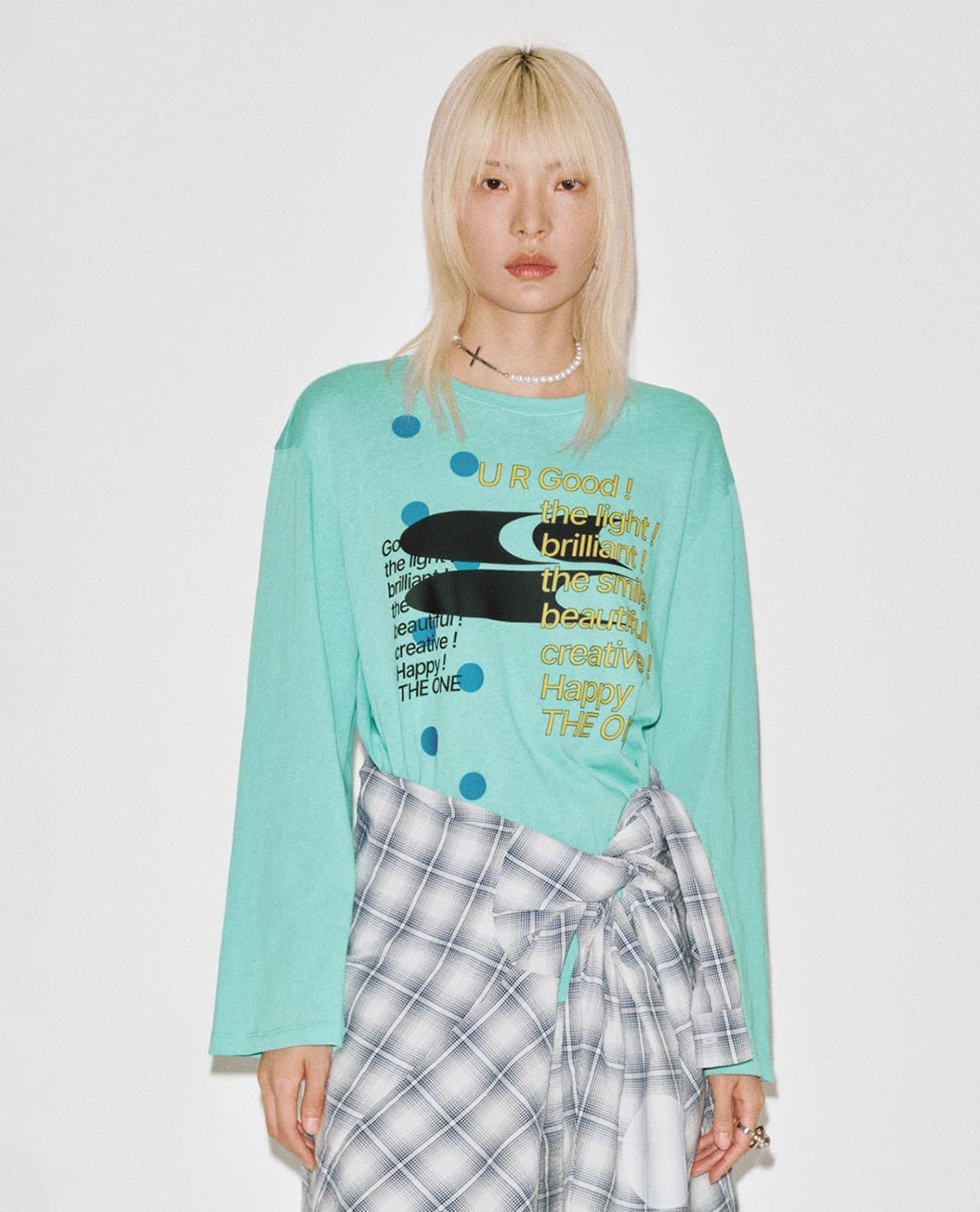 Áo thun nữ cổ tròn tay dài in họa tiết