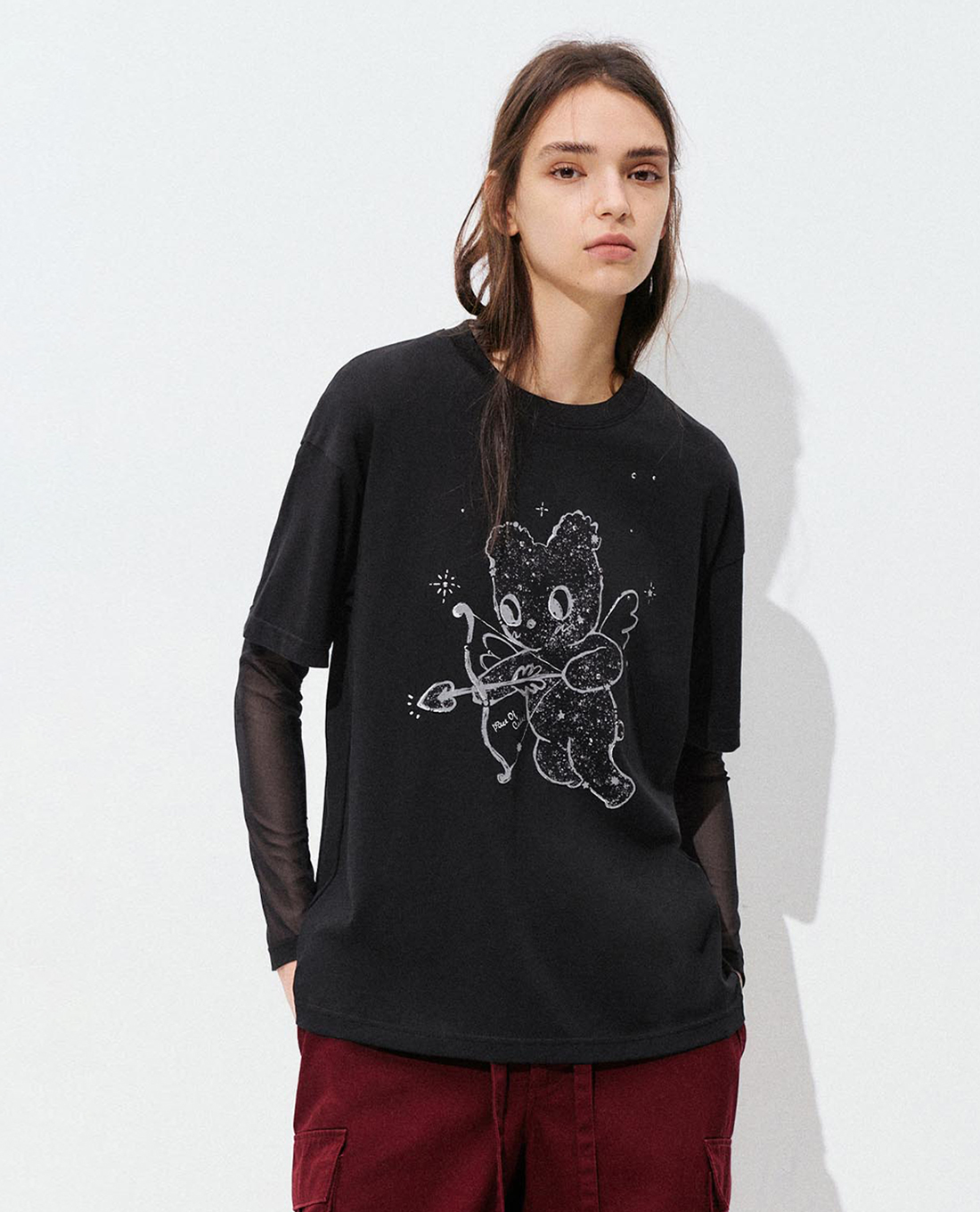 - Hình in gấu thiên thần mang hơi hướng grunge trẻ trung