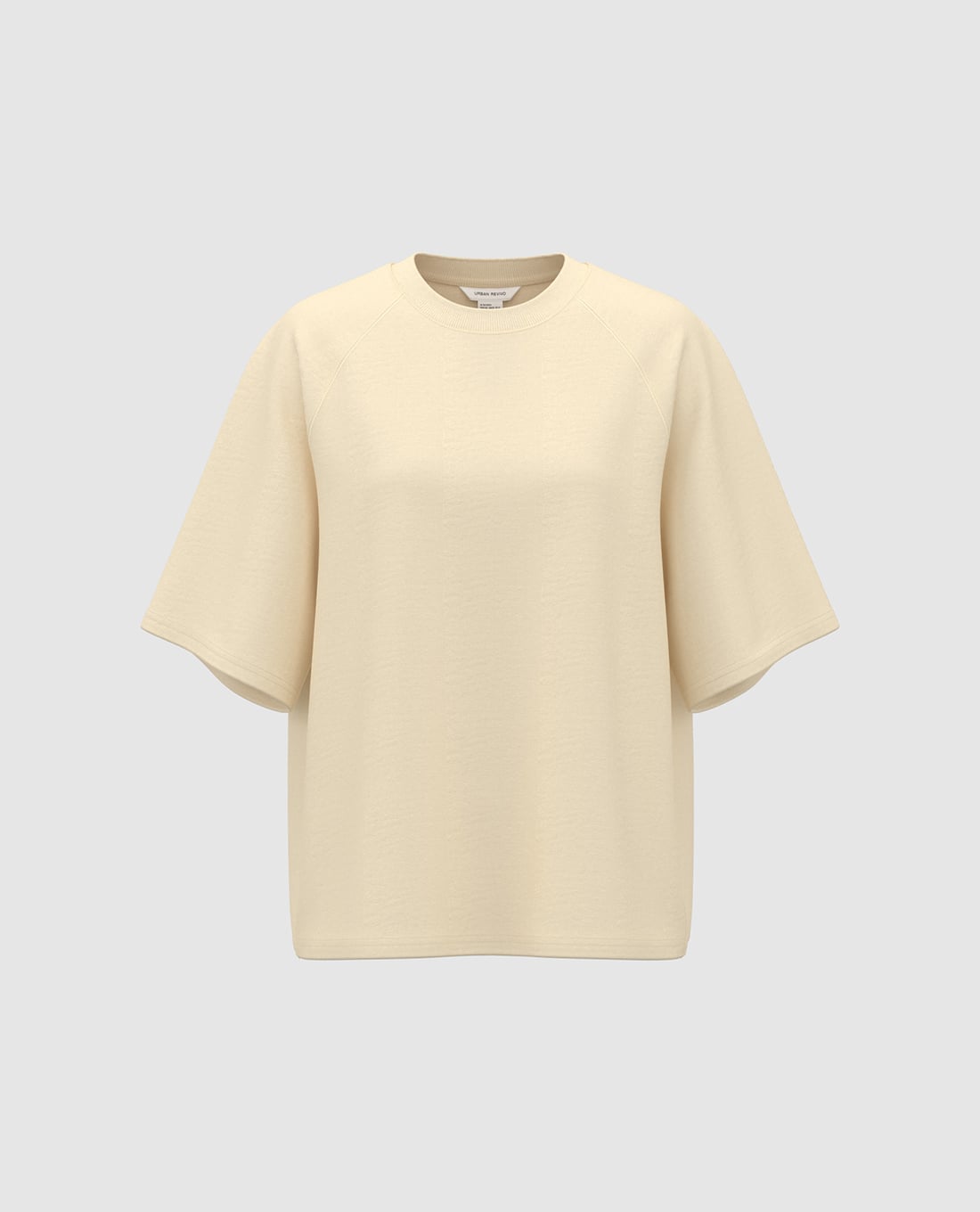 - Cổ tròn bo nhẹ, giữ phom đẹp sau nhiều lần giặt