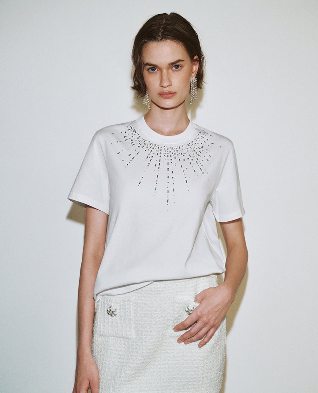Áo thun nữ cổ tròn tay ngắn đính đá