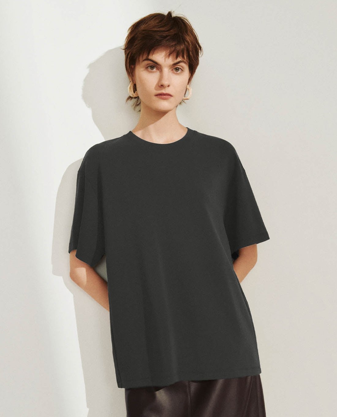 - Kiểu dáng áo thun tay ngắn phom suông hiện đại