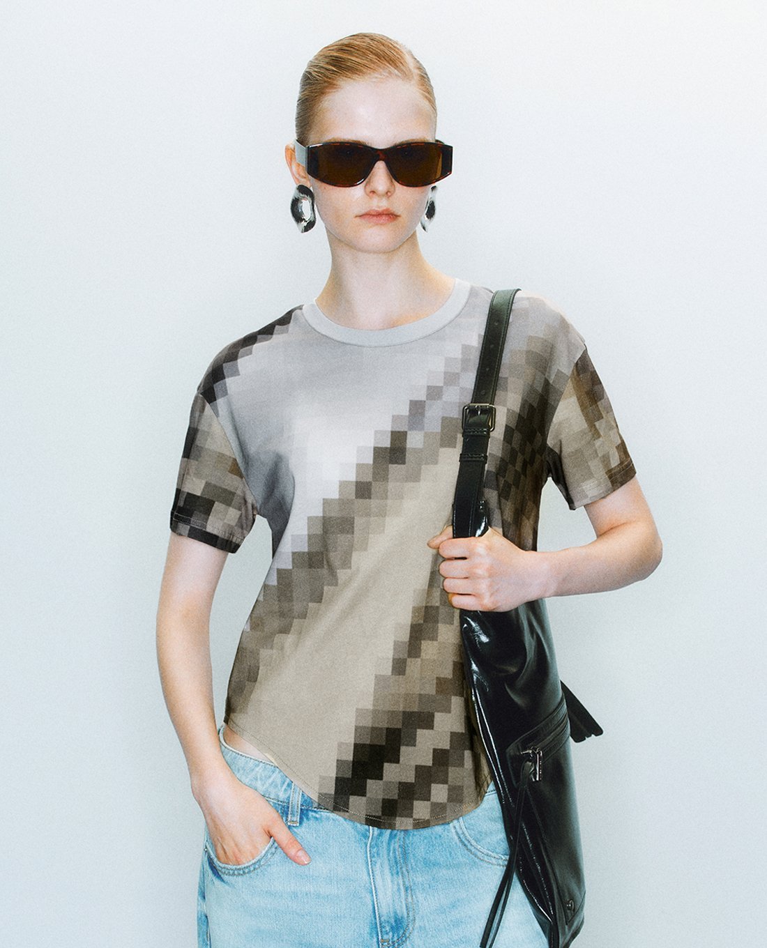 Áo thun nữ cổ tròn tay ngắn họa tiết pixel