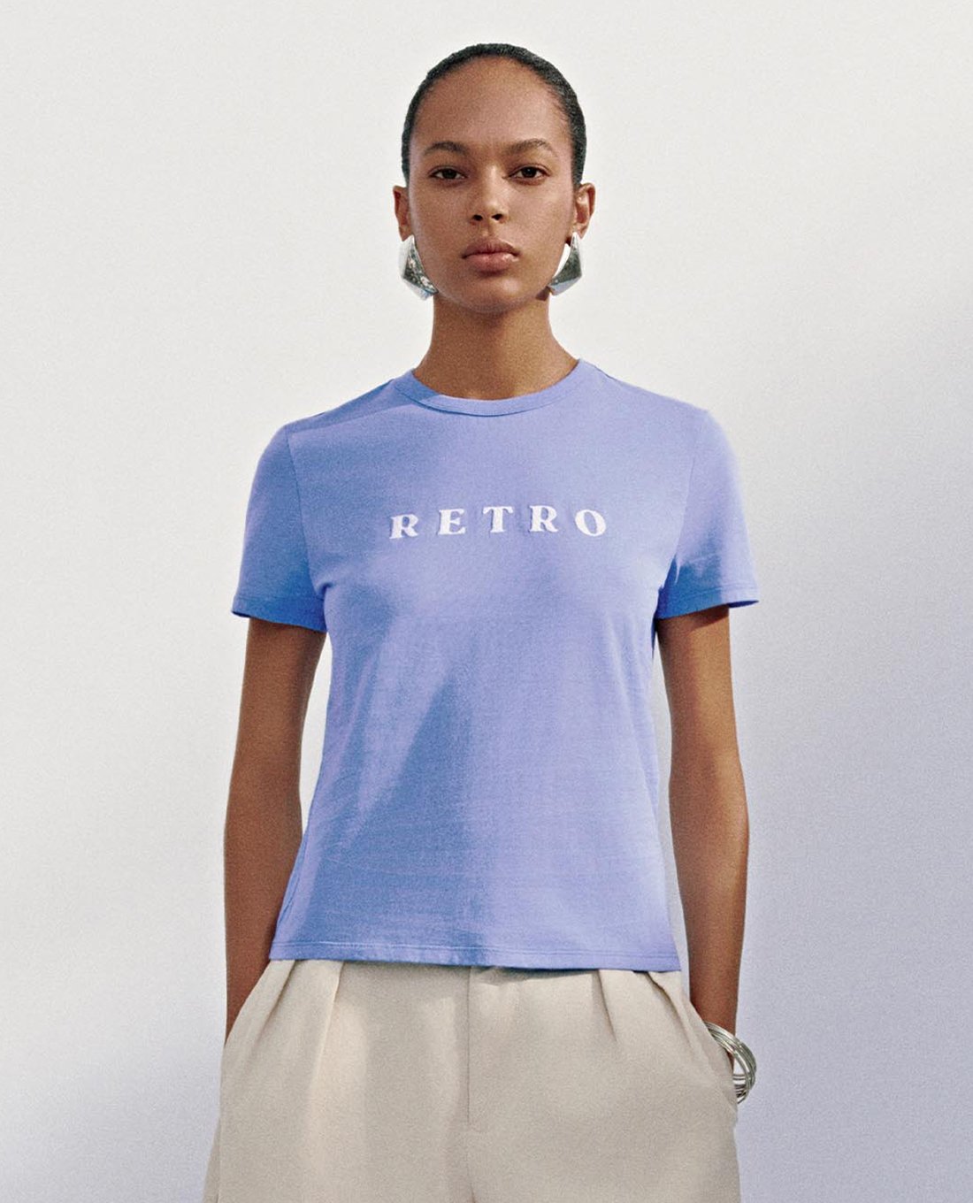 - Chữ in "RETRO" sắc nét ở ngực áo