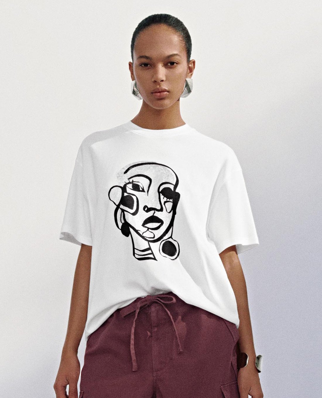 - Hình in nghệ thuật với những đường nét đen tạo thành khuôn mặt