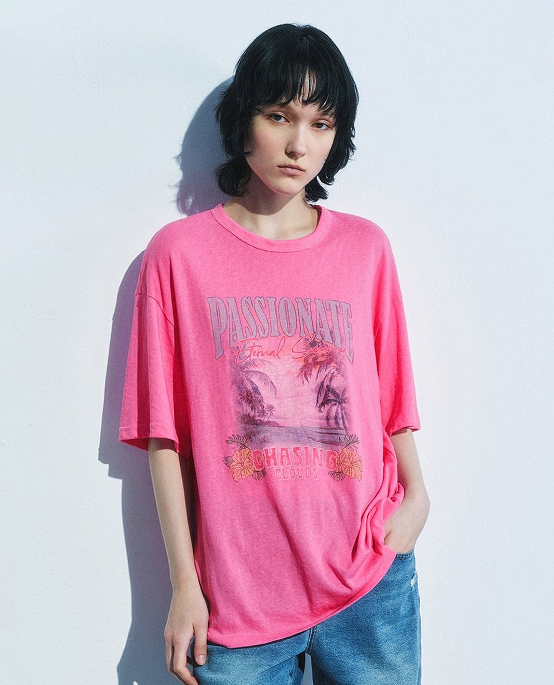 - Họa tiết in nổi bật với dòng chữ Passionate và hình ảnh cảnh biển đậm chất mùa hè