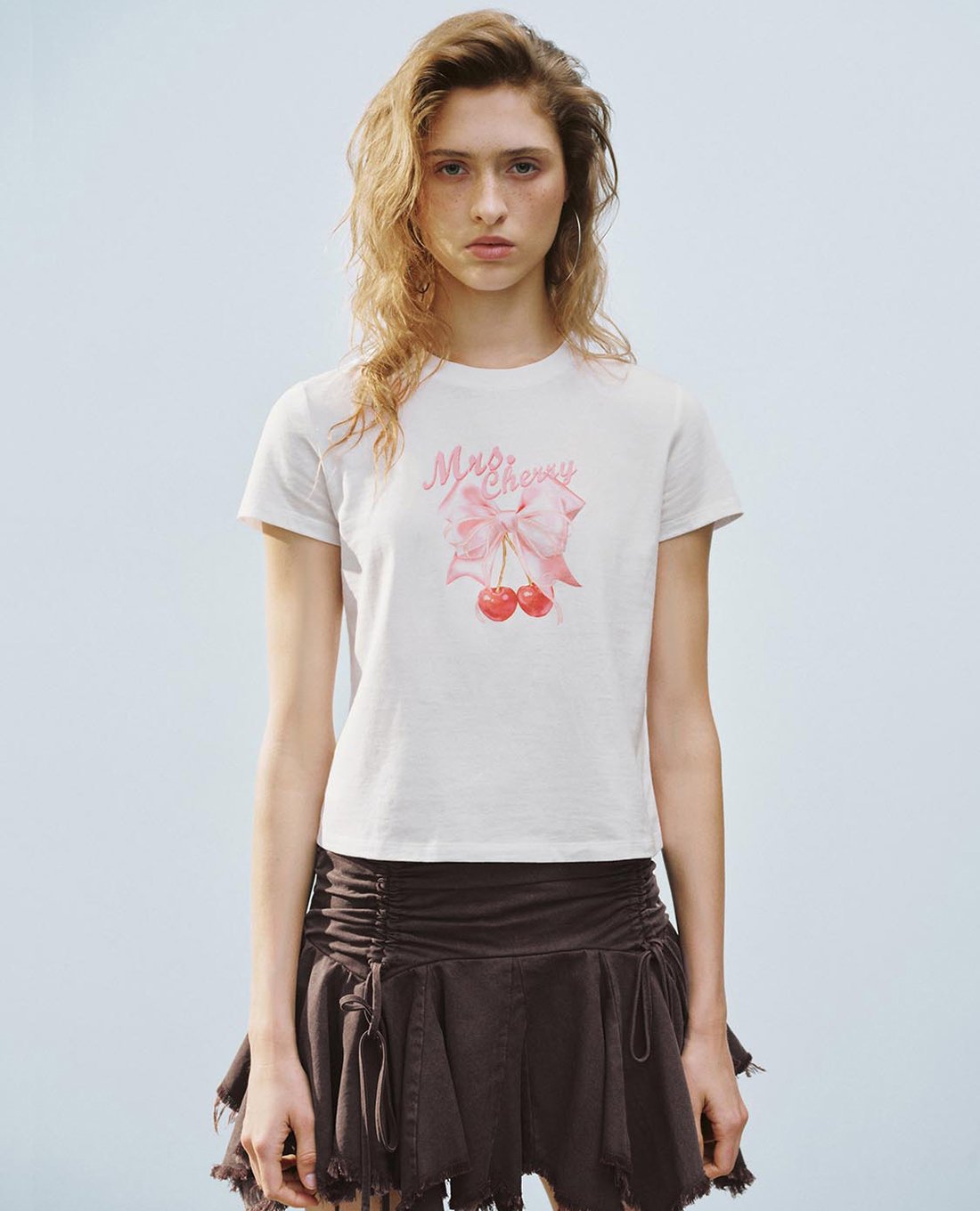 - In hình nơ và trái cherry cùng dòng chữ Miss Cherry đáng yêu