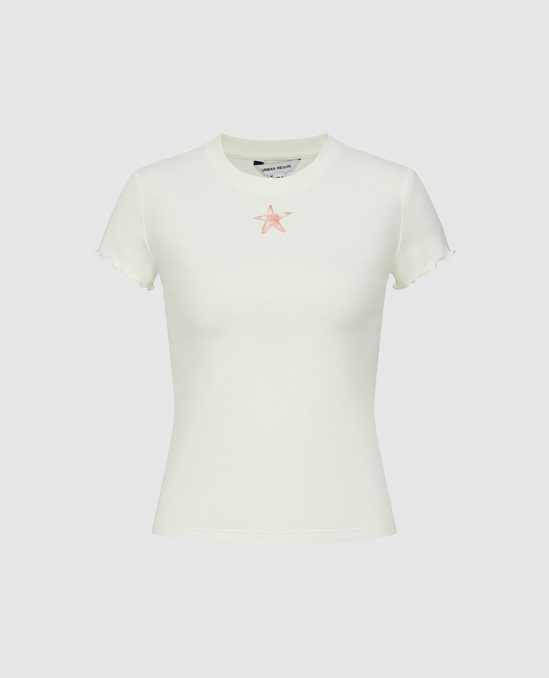 Áo thun nữ cổ tròn tay ngắn in họa tiết
