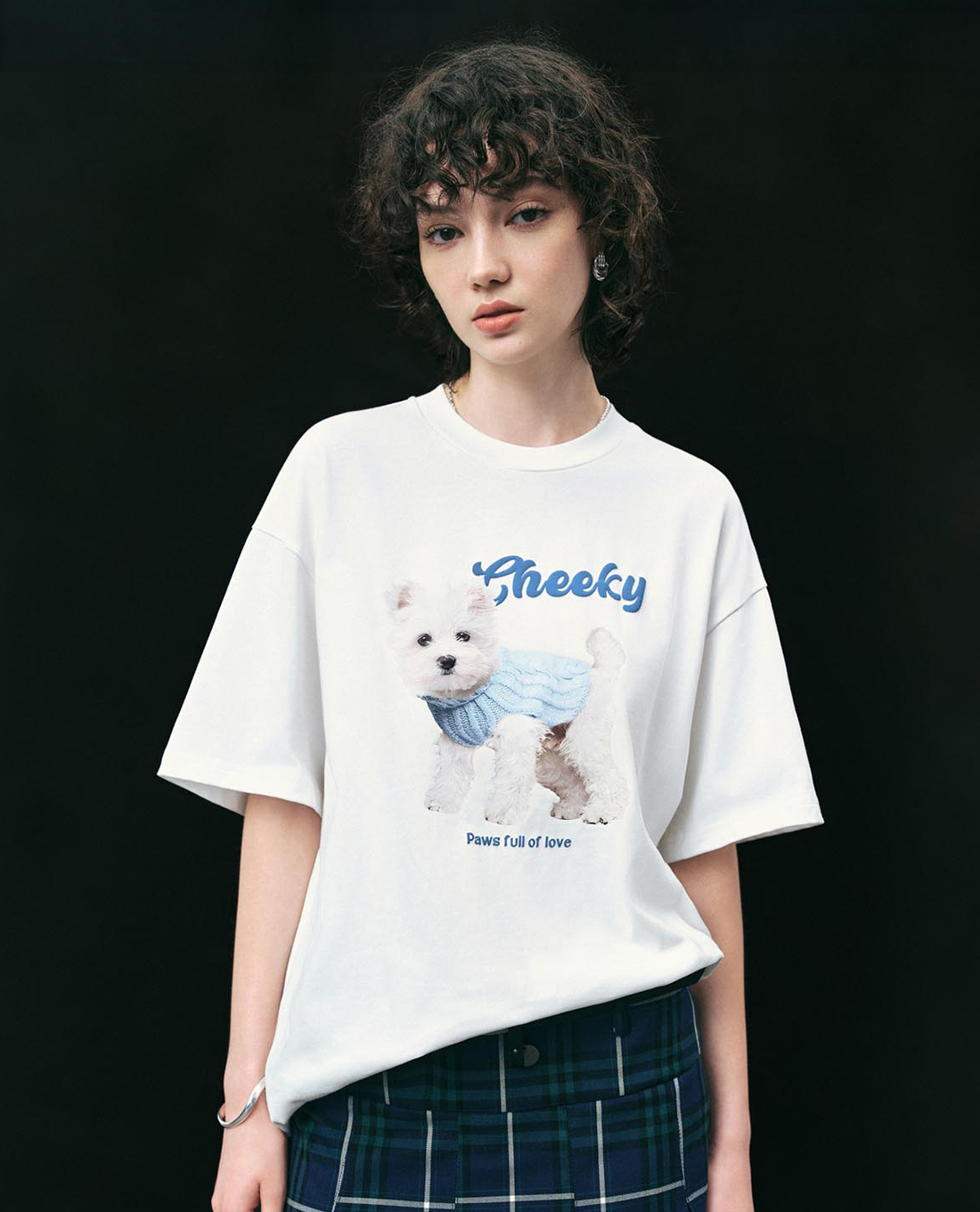 - Hình in chú chó đáng yêu cùng dòng chữ Cheeky nổi bật
