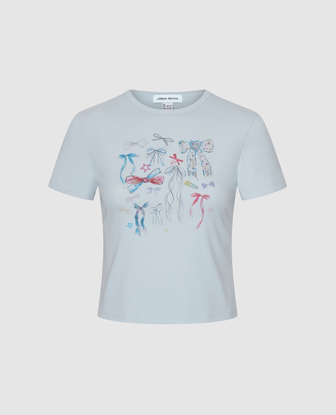 Áo thun nữ cổ tròn tay ngắn in họa tiết