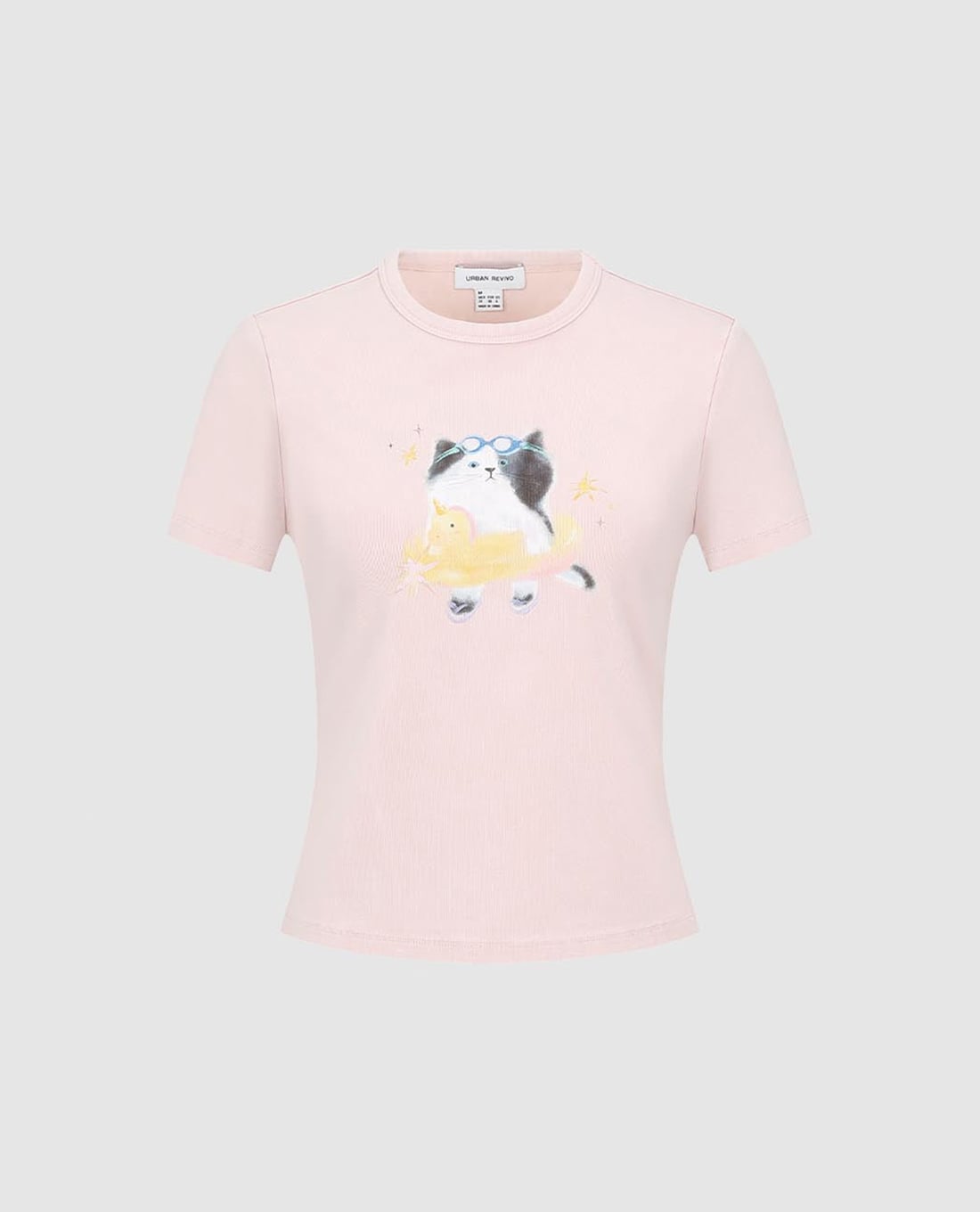 - Hình in chú mèo đáng yêu tạo điểm nhấn trẻ trung