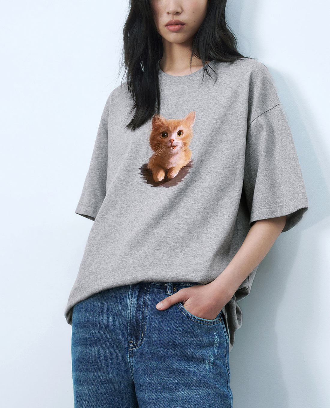 - Hình in chú mèo cam đáng yêu mang lại cảm giác dễ thương, trẻ trung