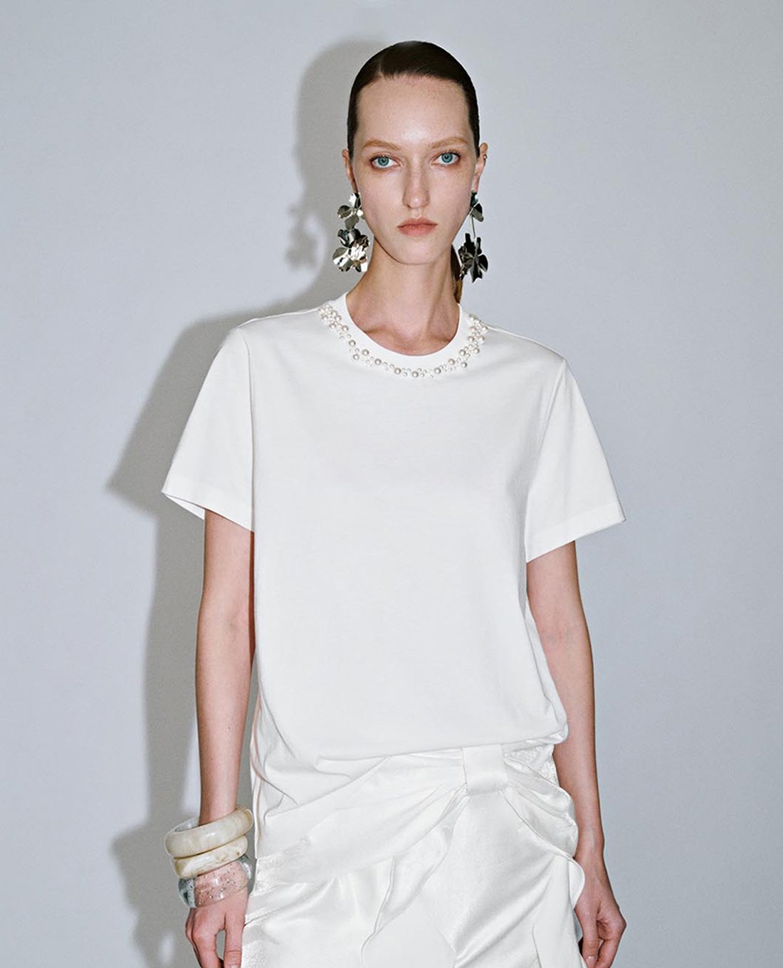 Áo thun nữ cổ tròn tay ngắn Pearl Decor