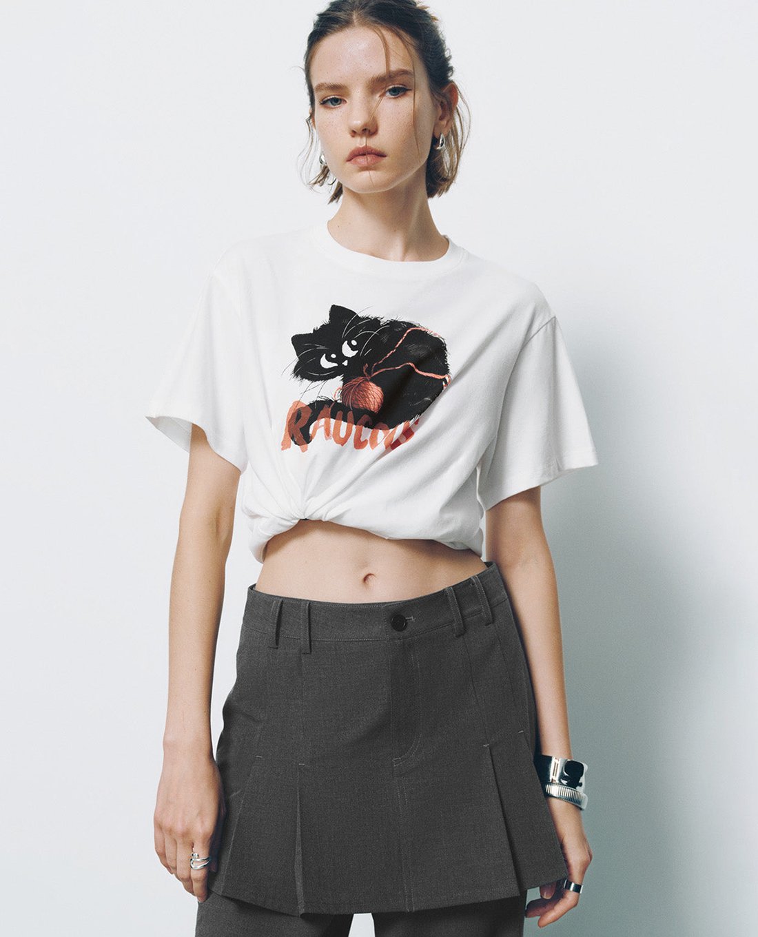 Áo thun nữ cổ tròn tay ngắn phối hoạ tiết