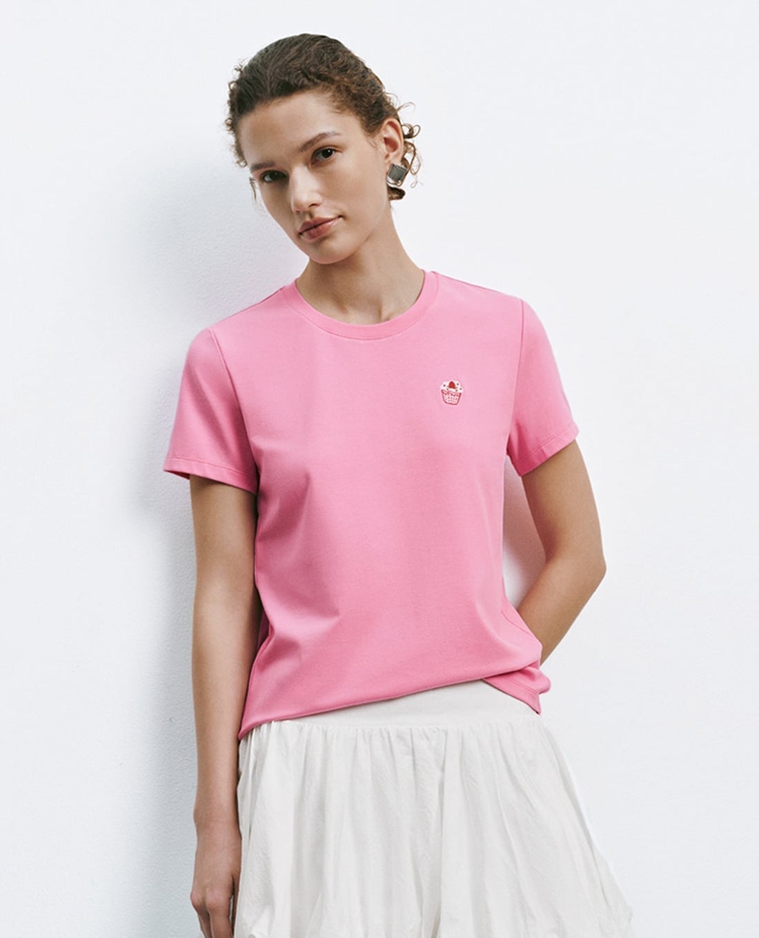 Áo thun nữ cổ tròn tay ngắn phối họa tiết
